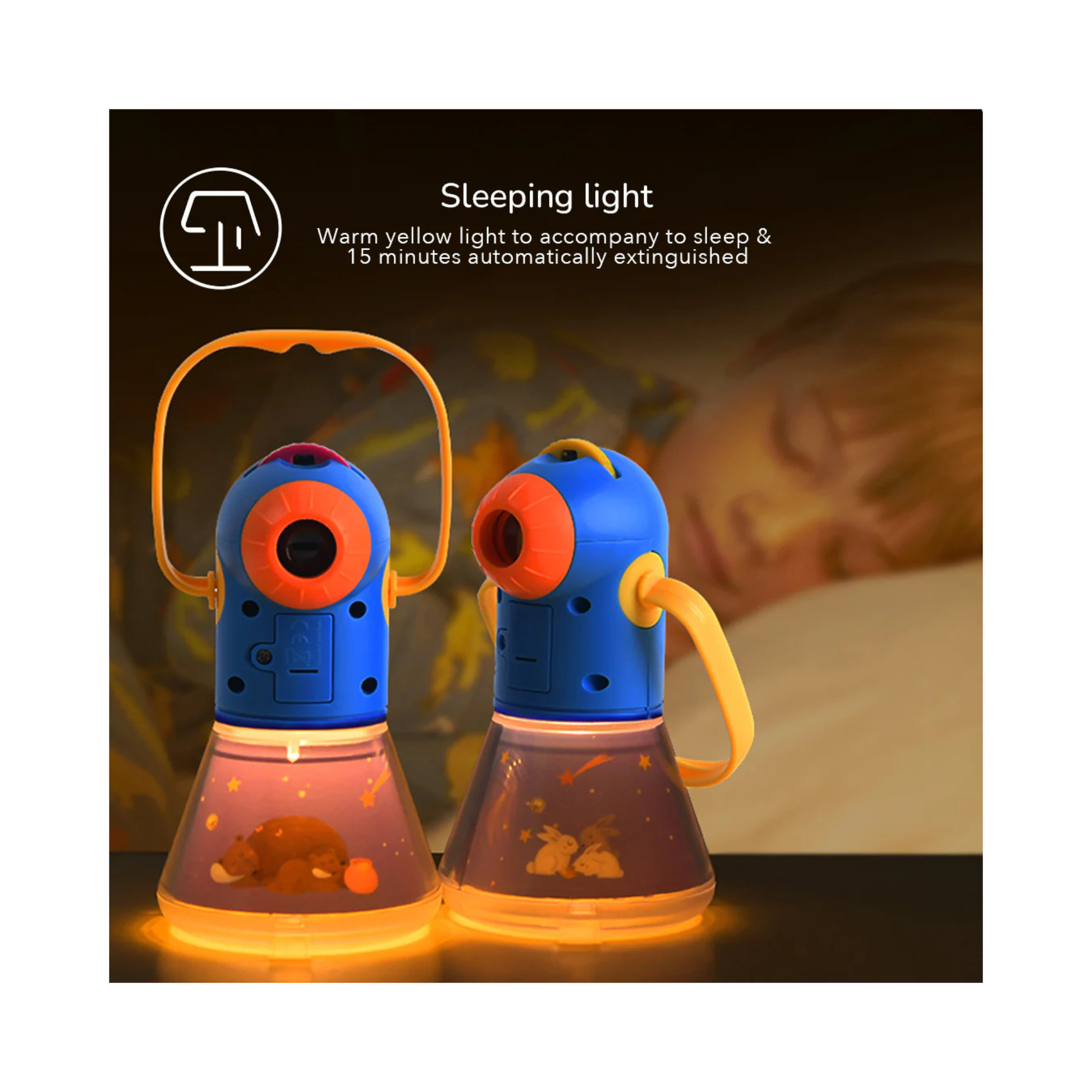 Schlaflampe: Schalte das warme gelbe Licht ein, damit Babys einschlafen können. Es schaltet sich nach 15 Minuten automatisch aus.